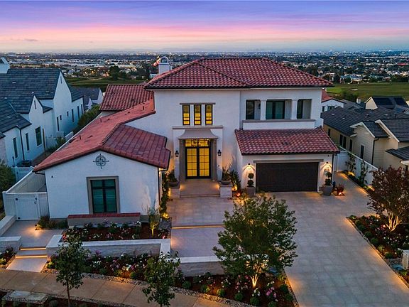 Built in 2022, this majestic architectural jewel features a dramatic entry with soaring two-story foyer open to the great room, dining room and the luxury two-story outdoor living space beyond, complimented by the fantastic view of city lights and the golf course. Located on the famed Rolling Hills Country Club, a private golf course designed by David Kidd, this guard gated community is highly sought after by golf lovers and families who enjoy the members only club house amenities. This home has tons of upgrades both from the builder, and by the current owner. The well-equipped kitchen is complete with dual islands providing ample counter and cabinet space. Spacious and bright primary bedroom is located on the first floor, accented by a relaxing sitting area, generous walk-in closet upgraded with fixtures imported from Italy. The deluxe primary bath includes dual-sink vanity, large soaking tub, luxe shower, and private water closet. Also on the first floor are two secondary bedroom suites, each feature roomy closets and private full baths. Secluded on the first floor is a sizable bonus room that could be an office or gym room. Up the contemporary staircase, a glass and steel railing bridge leads to the family room upstairs that has an elevated view of Downtown Los Angeles and the mountains in the backdrop. A cozy one bedroom suite has its own balcony facing the front of the house. An outdoor kitchen with contemporary flares has marble counters and full set of stainless steel appliances. The spacious backyard has multiple highlights including the panoramic view, a fire ring for intimate gathering, putting green that echoes the theme of the golf course, and a pond with water fall and stream. It is located in the award-winning Palos Verdes Unified School District. Must see to appreciate.