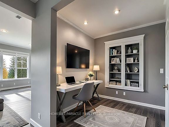 Location!! Location!! Just 1 Year New freehold double car detached home Over 2,550 Sq Ft with 5 Bedroom at Prime South Barrie Location - Welcome to this stunning, new home offering 2,569 sq ft of beautifully designed living space in one of Barrie most sought-after, family-friendly neighbourhoods. Featuring 5 spacious bedrooms upstairs plus a main floor office/Den. This home delivers the space and flexibility modern families need. The inviting grand foyer with 9-ft ceilings leads into a stylish, open-concept main floor with rich hardwood flooring, a separate sitting room, and an entertainers dream kitchen, complete with a large centre island, breakfast bar, stainless steel appliances, and casual eat-in dining. The adjoining living room is bright and welcoming- perfect for hosting or relaxing together as a family. Upstairs, the primary suite offers the perfect escape, with two generous walk-in closets, a private 4-piece ensuite, and beautiful natural light. You'll also find four additional large bedrooms, convenient second-floor laundry, and another full 4-piece bath. The unfinished basement is a blank canvas with endless possibilities add bedrooms, a home gym, rec room, or an in-law suite with ease. Additional Highlights: Double car garage with inside entry, Main floor 2-piece powder room, Steps to the Barrie South GO Station, Costco. Hwy 400, Yonge St, Surrounded by top-rated schools, trails, parks, shopping & restaurant., Whether you are upsizing, growing your family, or looking for a move-in-ready home in a vibrant community this one checks every box. Come see the lifestyle that awaits. Prime location with a beautiful park right at your doorstep and no front neighbors just a tranquil park setting steps from your door. *Some of the pictures are virtually staged.