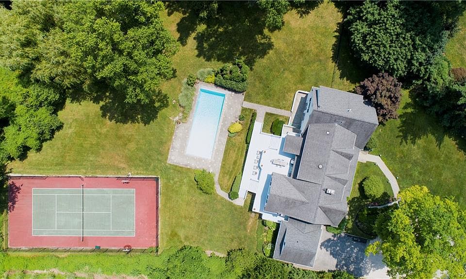 Westchester Meets The Hamptons! This beautifully updated 6 bedroom, 6.5 bath home is set on a private road on a lush 2.42 acre lot with a pool, tennis court, & flat park-like setting. 1st Floor: grand foyer, formal living room, formal dining room with fireplace, modern eat-in kitchen w/breakfast area, center island with seating, Viking & Thermador stainless appliances, butler's pantry, mudroom, glass doors to deck & yard, spectacular family room near the kitchen with cathedral ceiling, fireplace, doors to yard & triple exposure view. 1st floor master suite w/his-and-hers WIC, dressing area, master bath w/Jacuzzi, sitting room, powder room, plus large ensuite guest room.2nd level: 4 additional large bedrooms, 3 full baths, ample closet space, sitting area, bonus recreation room, laundry, & library w. balcony. Superb walk-out lower level with gym, laundry room, bathroom, recreation room, wet-bar & access to the pool, tennis court & property. 2019 taxes have just been reduced to $48,719
