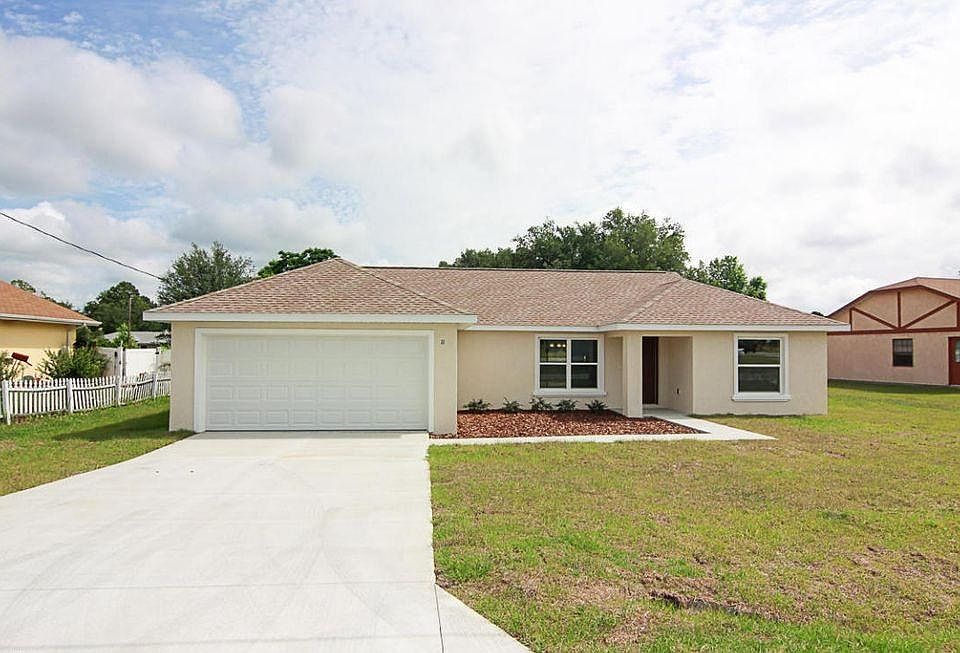 Beautiful 3/2/2 concrete block home with 1,413 living square feet and 1,860 square feet Located on a quiet cul-de-sac surrounded by nice homes. Covered front entryway. Inside boasts an open and split floor plan with high vaulted ceilings, energy efficient LED lighting, E-Glass energy efficient tinted windows with inside pull-downs for easy cleaning, formal dining room, & an inside laundry room. Kitchen has a breakfast bar island with electric & a pantry. Spacious master suite with a walk-in closet and master bath with a nicely tiled shower. Guest bath has a linen closet. Nicely sized guest bedrooms. Linen closet in the hallway.