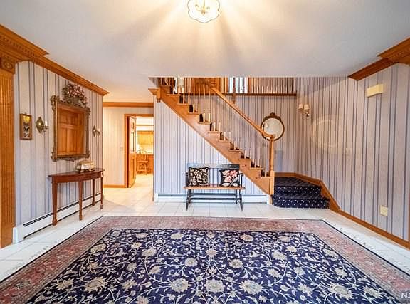 Located in one of Old Tappan's finest locations,this majestic center hall colonial is nestled on almost an acre of property.This home has many features including extensive custom moldings, Flemish style hardwood floors with Inlay on 1st Level, as well as HWF on 2nd level. This home has spacious rooms with 6 panel doors. The chef's kitchen is the heart of the home with a large center island with cooktop, oak cabinetry, dining area with sliding glass door to oversized deck. Kitchen opens to grand great room with soaring ceiling, brick fpl./custom wood paneling, palladium windows, wet bar and french doors to deck overlooking the expansive private backyard. A banquet size dining room, living room with fireplace, 5th bdrm, bath and mudroom completes 1st level. 2nd floor features grand primary suite with WIC and primary bath. 3 super large bedrooms with massive closets, and lndry. Basement full,unfinished with access to 3 car garage. Sewer hookup responsibilty of buyer. Welcome Home!