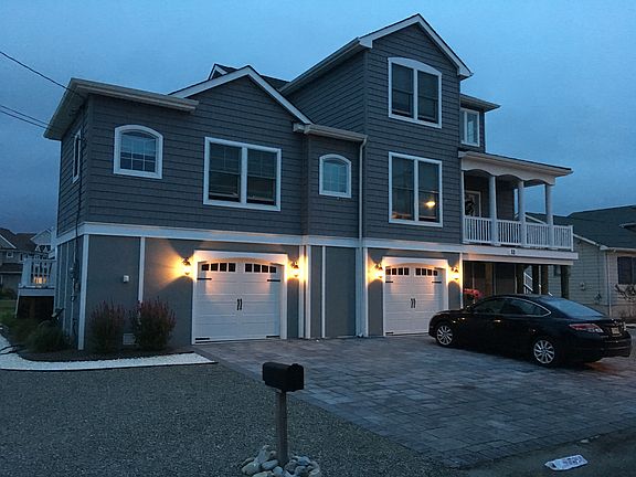 Gorgeous 4 bedroom 3.5 bath waterfront home located on quiet dead end street. No detail overlooked in this home designed by LBI premier architect Michael Pagnotta, offering over 2500 Square feet of living space with an Open Floor Plan. Due to job relocation, sellers must reluctantly leave their dream home. Some of its features include beautiful hardwoods throughout, an elevator, gourmet kitchen w/ granite counters, wine fridge, pot filler, vented hood, and high end appliances. Then off the dining and living rooms, pass thru the sliding doors to the huge outside deck shaded by slatted pergolas offering long views down the lagoon and amazing sunsets! 2 of the 4 bedrooms have en suite baths and walk-ins. Then there are also great bay views from upstairs rooms and office nook. (cont.)