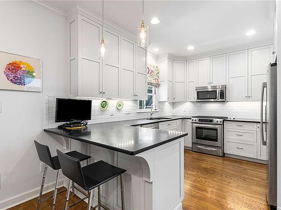 Marble fireplaceSpacious primary suiteGleaming hardwood floorsRenovated bathCustom renovated kitchenLarge separate dining roomStainless steel appliances
