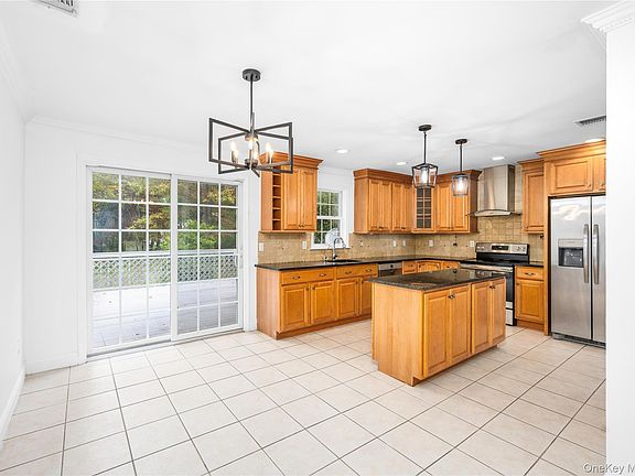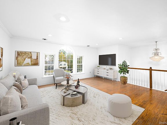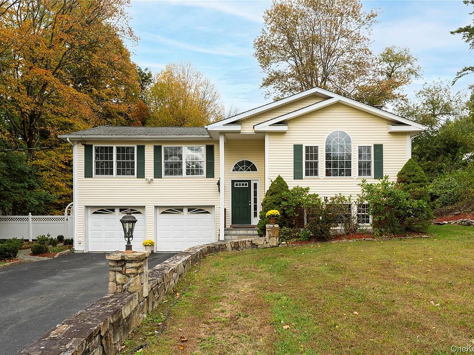 Come see all this beautiful home has to offer! Featuring 3 bedrooms, plus an office/den, and 3 full baths. The primary bedroom includes an ensuite bathroom. The main level boasts an open floor plan with an eat-in kitchen, stainless steel appliances, sliding glass doors to the deck, oversized windows, crown molding, multiple closets, and hardwood floors throughout. Hardwood floors have been refinished since these photos were taken, and the home has been freshly painted with new lighting fixtures and updates throughout the home. The lower level has a spacious family room that showcases a stunning oversized brick fireplace with an arched alcove for firewood or decor. This level also includes an office/den with an ensuite bath—perfect for guests, an in-law suite, or a home office. Additional features include a laundry room with built-in cabinetry, an oversized double-door closet, and a whole-house reverse osmosis water filtration and softener system. Enjoy direct access to the 2-car garage and the beautifully landscaped yard, which includes multiple outdoor spaces: a large deck, two patios, and a level yard ideal for entertaining, outdoor dining, or fire pits. This home is truly an entertainer’s dream!