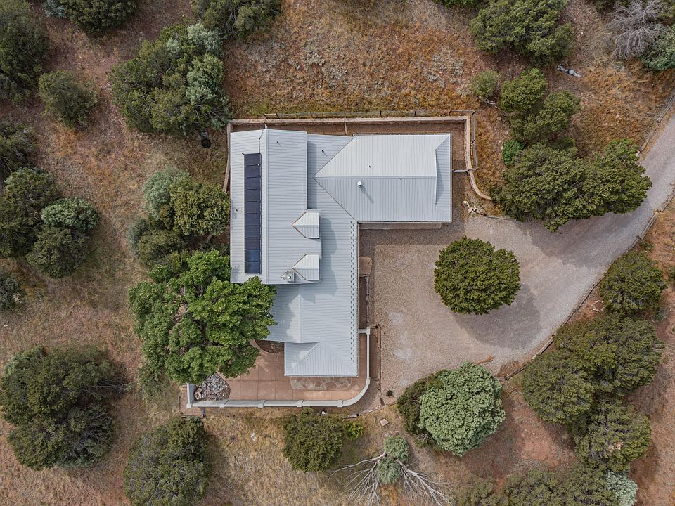 Escape to Peace and Nature with Radiant Floor Heat!Embrace the tranquil beauty of this 3-bedroom home plus office, tucked away in a gated community with direct access to Cibola Nat'l Forest. Enjoy the blissful quiet and marvel at the variety of birds and hummingbirds visiting your lush gardens and waterfall.Stay toasty warm with radiant floor heat throughout the home. With an owned solar system, your monthly electric bill is a mere $8, and the gas stove in the great room adds to the cozy ambiance. The home's Northern New Mexico style, Saltillo tile & wood laminate flooring, and Mexican tile accents exude charm and character.Entertain on the covered flagstone patio surrounded by nature's beauty, and appreciate the convenience of a metal roof that allows the snow to slide off