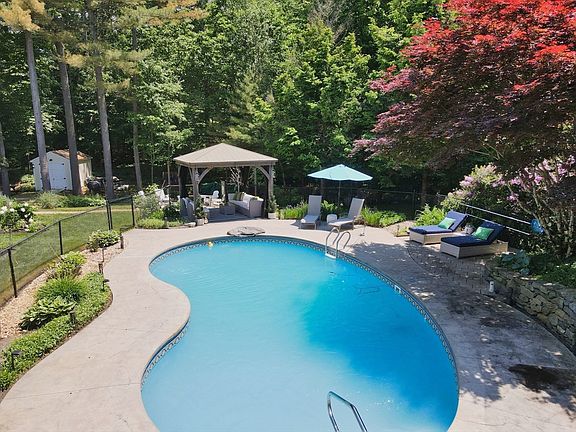 Nestled in a serene cul-de-sac, this stunning colonial home offers resort-style living with its expansive yard, salt water in-ground pool, and inviting three-season porch. Boasting multiple updates, Harvey windows, and hardwood flooring throughout the first floor, the property seamlessly blends modern elegance with timeless charm. Having raised a family and meticulously maintained by the current owners, it promises a warm, welcoming atmosphere for its next chapter. Enjoy the convenience of a backup generator, seller owned solar panels, and a two-car garage. All set in a quiet neighborhood perfect for relaxation and leisure. Steps away from nature, abutting a combined 554 acres of conservation land. Have coffee in the morning with the humming birds on the back deck, or a cocktail on the front porch listening to the frogs and watching lighting bugs. From radiant flooring to reverse osmosis, This one truly has it all.