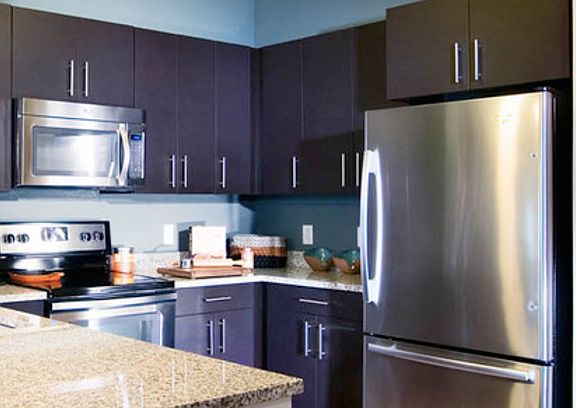 Apartment homes feature open modern floor plans, hardwood style flooring, granite countertops, and stainless steel appliances. Community amenities include an outdoor swimming pool, two fitness centers, yoga studio, gated dog park, dog washing station, tennis courts, playground, clubroom, screening room, internet cafe, outdoor seating area with fire pit, and more!