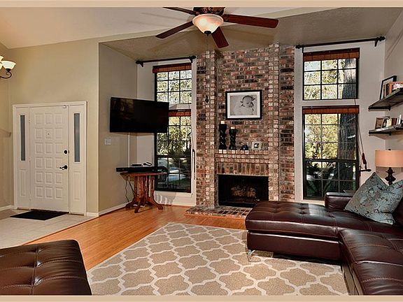 Centrally located in the heart of The Woodlands! Ryland home on a cul-de-sac in Cochran's Crossing w/many improvements: New driveway 2016, abundant dbl paned windows, crown moulding, recent neutral interior paint, bamboo flooring. Spacious kitch w/new SS gas convection oven, new hardware & repainted cabinets opens to bkfast nook (washer/dryer/fridge incl); frml dining opens to den w/brick FP; all 3 bedrms up; garage w/epoxy floor & storage system; private, fenced yard w/stamped concrete patio.