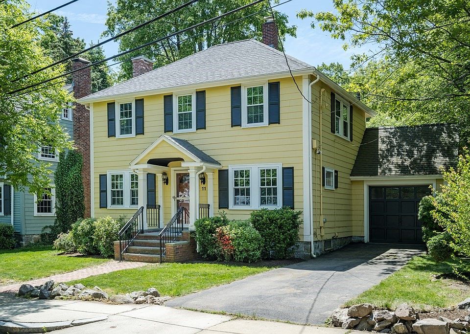 Beautiful center-entrance Colonial in desirable Peak Hill neighborhood. Lovely front portico, brick walkway, bluestone steps, and wrought iron railings add to home’s curb appeal. Eat-in kitchen offers serving window to formal dining room with gorgeous gumwood wainscoting, beamed ceilings, crown moulding, and built-in hutch. Front-to-back living room with fireplace (2022 complete chimney rebuild & firebox). Second level offers primary bedroom with double closets plus two great bedrooms and modern tiled full bath with towel warmers. Large three-season sunroom with abundant natural light features double sliders that lead to new deck and beautiful back yard. Freshly painted rooms and gleaming hardwood floors throughout. Central AC and insulated double-paned windows. Attached garage with direct access into home. Home sits beautifully on large, professionally landscaped lot. Walking distance to the Arnold Arboretum, Commuter Rail (approx 0.6 miles), and neighborhood shops and restaurants.