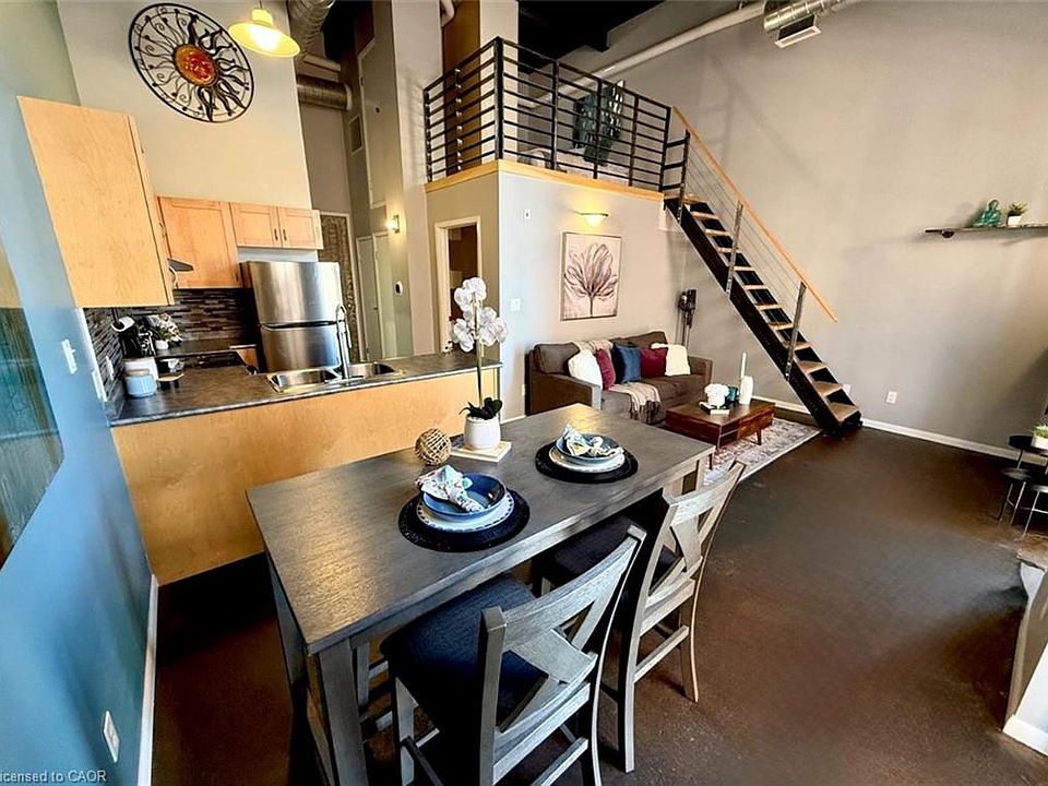 Welcome to Unit #406 at The Annex, an Impressive 2-Bedroom, 1-Bathroom Industrial Loft and Considered One of Hamilton's Most Desirable Boutique Condo Buildings. This Loft-Style Condo Offers a Modern Open-Concept Layout with Soaring Ceilings, Polished Concrete Floors, In Suite Laundry and Exposed Ductwork that Give it a True Urban-Chic Vibe. Natural Light Pours in through Tall Windows, Accentuating the Spaciousness of the Main Living Area. The Upper-Level Loft adds a Cool Architectural Touch and Functional Separation and can be Utilized as a Home Office or Second Bedroom. Perfectly Located Steps from the City’s Thriving Food and Arts District and the Trendy King William and James Street North Bar and Restaurant Scene, and Within Walking Distance to the GO Station, Public Transit, Shopping, Hospital, the Hamilton Public Library, Art Gallery of Hamilton, Hamilton Convention Centre, First Ontario Centre, Theatre Aquarius and So Much More. Whether You're a Young Professional, Urban Enthusiast, or Savvy Investor, this Unique Property Delivers on Both Lifestyle and Location!