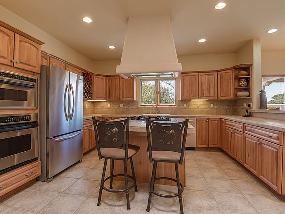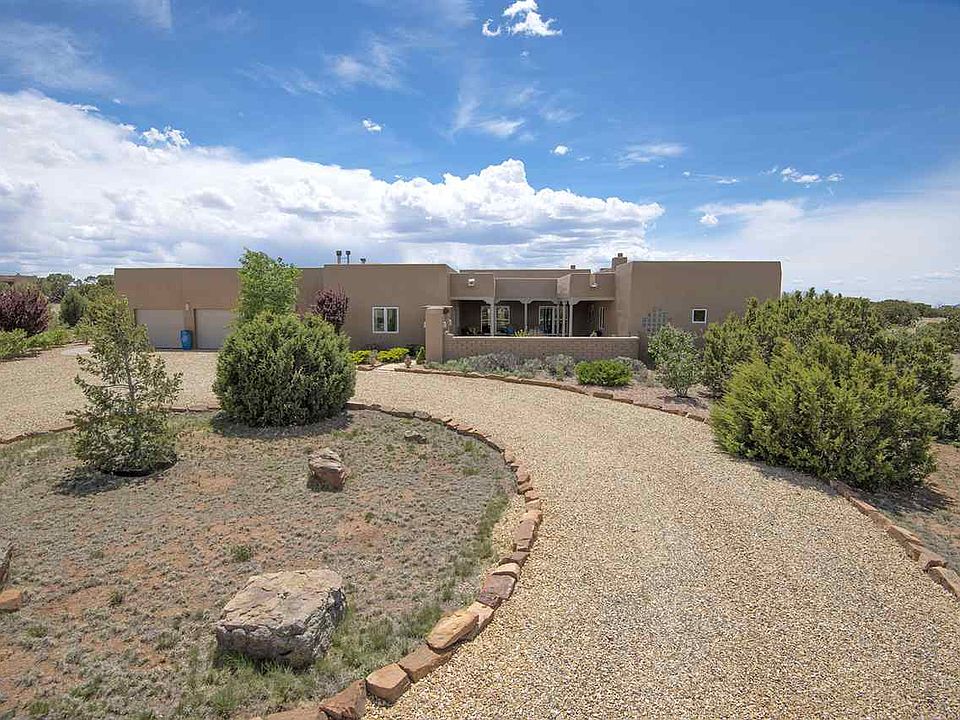 Absolutely gorgeous Custom built 3 bed 3 bath 3,078 home, Elegant in feeling, Spacious in design. Enter through a walled garden area designed for privacy. The high-ceiling open floor plan for the living area and kitchen is totally embracing. The kitchen is a cooks delight with a center-island, hickory cabinets and stainless appliances. The ideal split bedroom plan is great for guests and owners alike. The master suite is generous with a separate office, as well as, an additional studio space with bath. The outdoor living spaces with two view filled courtyards add that extra special feelings of enjoyment for those Santa Fe evenings, magnificent.