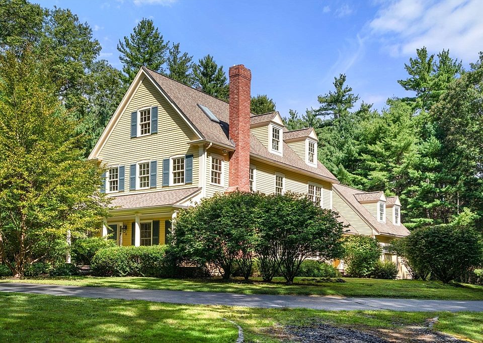 Tucked down a private drive, this beautiful custom colonial farmhouse blends classic design with modern comfort. A charming farmer’s porch sets the tone, welcoming you into a flexible 10-room home with an open, light-filled floor plan and 9ft ceilings on 1st fl.The first floor offers a warm and inviting fireplace living room, a family room with custom built ins and fire place, a formal dining room framed by large windows, and a lovely kitchen with cherry cabinets, a center island, and plenty of workspace. A side entrance opens to a rear hall with laundry and stairs leading to a versatile bonus room with a full bath above the garage -ideal for guests, a home office, or a studio.Upstairs, the spacious primary suite includes an en-suite bath, while two additional large bedrooms share a full bath. The third floor provides even more living space with an additional suite featuring an office, sitting room, full bath, and a fourth bedroom. This home offers a picturesque setting and privacy