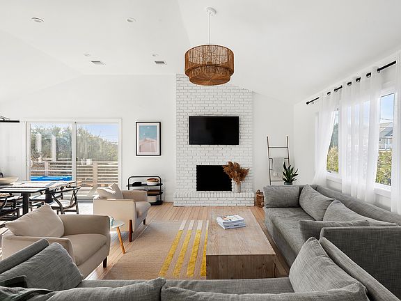 Located just a block away from the ocean beaches in Ditch Plains, this 4 bedroom home is newly renovated. The first level offers 2 bedrooms, a full bathroom, and large living area with outdoor access. The top level has an open kitchen, dining and living area with fireplace and that opens to the spacious deck. There are also 2 bedrooms and a full bathroom on this upper level. Outdoors is perfect for entertaining with a new heated gunite pool, fire pit, built in BBQ, extra long dining table and outdoor shower. An amazing summer retreat.