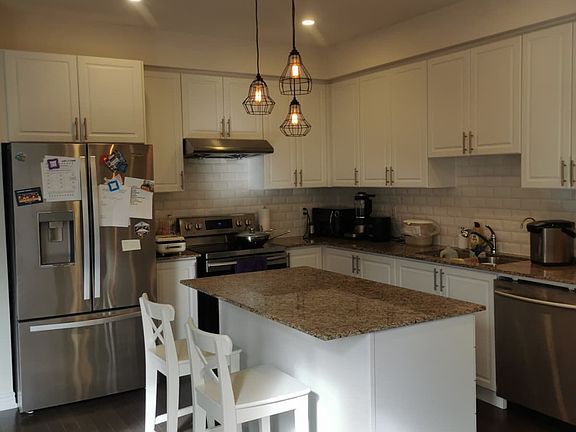Gorgeous Sun-Filled 4 Bedroom Detached Home with Luxurious Stone Front, Appr 2500Sqft, Upgraded Ceramic Flooring At Foyer, Hardwood Floor, Smooth Ceiling, Upgraded Light Fixtures & Pot Lights Thru-Out. 9Ft Ceiling, Iron Pickets. Modern Kitchen W/Granite Counter, S/S Appl, Backsplash, Center Island W/Breakfast Bar. 4 Br(2 Ensuites) On 2nd Floor. Huge Master W/Reading Area & 5Pc Ensuite. Quartz Counters In Bath, Legal Side Door From Builder. Spacious Mud Rm, Direct Access To Double Garage. R/I Cvac. Finished Patio Flooring and Flower Bed At Front Yard. Good School Zone: Black Walnut Public School & Bill Hogarth Secondary School. Close to Parks, Conveniently Located Near Cornell Community Centre, Child Care Centre, Highway 407, Shopping, Rouge National Urban Park.