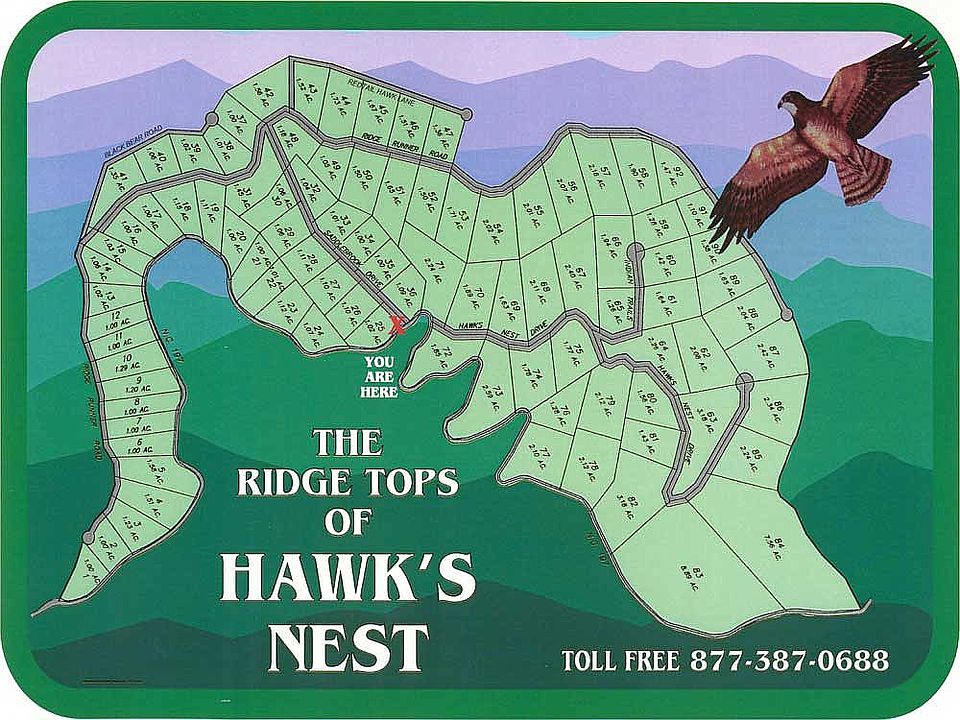There are 11 vacant one + acre lots. Most have great views of Mt Mitchell. The price of the lots start at $12,000 each. All lots are platted and approved for building. Individual wells and septic systems are required. The lots are adjacent to the Pisgah National Forest with hiking trails within minutes. Hikers will enjoy the Big Butt trail as well as longer hikes to Mount Mitchell and Craggy Gardens on the Blueridge Parkway. Hawksnest is centrally located in Western NC just 45 minutes north of Asheville and the Biltmore estate and 15 minutes from Burnsville. The Navitat zipline is less than 10 miles away and provides a fun experience. Depending on whether you take main roads or the less traveled scenic cut- through roads, the Blueridge Parkway is only minutes away. Using the attached map, the lots available are 1, 2, 3, 11, 16,17, 19, 20, 29, 30 and 31. Seller financing is available.