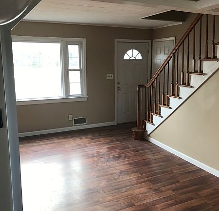 3 bed, 1 bath Cape, eat-in kitchen w/ granite countertop, laminate wood floors on first level, updated bath w/tiled tub area & floor, carpet in 2nd level. Public water & sewer.