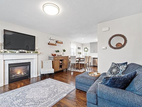 Gorgeous nearly new townhome at Tyngsboro Crossing! Enter into the sun filled living room with gas fireplace, gleaming Hardwoods throughout the open concept first floor. Kitchen has Quartz countertops, 36" cabinetry with crown moulding, stainless appliances including gas stove, large pantry and adjacent 1/2 bath. Upstairs the primary bedroom has vaulted ceilings, oversized closet & stairs to the loft. Loft is currently used as a spare bedroom office combo but could be a library with reading nook, home gym, nursery, etc. It also has some crawl space attic storage. The second bedroom is well proportioned with good closet space. The full bath is conveniently located right outside both bedrooms. The partially finished lower level has a cozy family room next to basement storage, laundry, utilities, and shared bulkhead to backyard and private patio. Just minutes to the highway, express bus to Boston, shopping, dining, trails, town beach, rec center, and top ranked public and private schools.