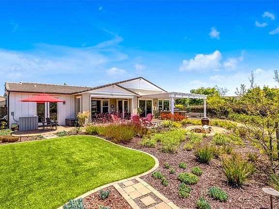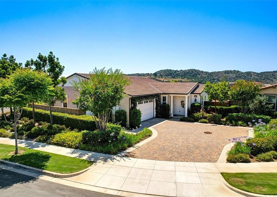 Incredible Single-Level Home located on Premium Elevated Lot in the Gavilan 55+ Neighborhood of Esencia has Just Listed. Home offers a coveted driveway and cul-de-sac corner lot Location too! This floorplan is ideal with 2 bedrooms, 2.5 bathrooms plus a den or private home office space. Situated on an oversized 8,665 sq ft lot provides plenty of outdoor living areas with scenic hillside views and exceptional privacy. The open-concept layout highlights a chef’s kitchen with built-in stainless steel GE appliances, a walk-in pantry and an oversized island with countertop overhang for casual eat-in kitchen dining. This open layout seamlessly connects the kitchen with the living room, the formal dining area and the covered outdoor lanai dining area—perfect for entertaining. The primary bedroom suite features a wall of windows overlooking the backyard and is complete with an ensuite bathroom including a dual sink vanity, large walk-in shower and expansive closet with an organizer system. Second bedroom also has an ensuite bathroom with a separate large walk-in closet for additional storage space. Just around the corner is the laundry room complimented with extra built-in cabinets and a sink. The office features an added Barn Door and French Doors, creating privacy with a lot of natural light too. Upgraded wood-like tile flooring flows throughout the home for a clean, modern look. Enjoy effortless indoor-outdoor living with large slider door in the dining room, plus a tri folding panel door opening to the lanai dining space. Backyard features a custom outdoor kitchen, alumiwood pergola and built-in lava rock gas fire pit. Additional noteworthy highlights include an HOA maintained front yard, a paver driveway, and the attached 2-car epoxy finished garage for easy storage and parking. Enjoy an array of resort-style amenities of Rancho Mission Viejo including access to multiple clubhouses like The Hacienda, The Getaway, The Outlook and the BBQ Barn featuring fitness centers, numerous pools and parks as well as various sport courts and planned community events. Rancho Mission Viejo blends rural charm with modern amenities making this an exceptional place to reside with this incredible home encompassing all the features that comprise a perfect single-level residence. Come tour to see all this beauty!