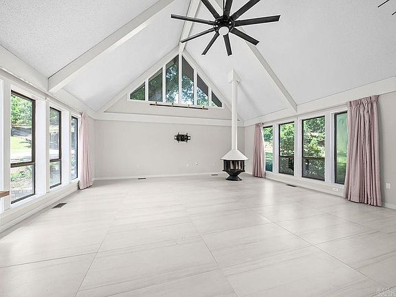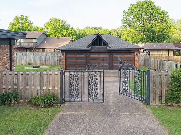 This exceptional, updated home is located in the heart of Fort Smith. Bathed in natural light, the modern residence features three downstairs bedrooms, each equipped with its own full bathroom, in addition to a convenient half bathroom. The spacious living and dining areas create an inviting atmosphere, while the game room, also situated on the ground floor, is ideal for entertaining guests. Upstairs, a versatile bonus room serves as a perfectly quiet reading nook or office space. The home boasts new fixtures and adjustable touch lighting throughout. The updated kitchen is a culinary delight, featuring butcher block countertops, a black granite sink, a mirrored backsplash, and a double oven. A large utility room with a sink adds practicality to the layout. The oversized, fully privacy-fenced backyard offers a tranquil retreat, complete with a fire pit, lush landscaping, and landscape lighting. Additionally, the property includes a two car attached garage and a three car heated, and cooled detached garage, enhancing its appeal.