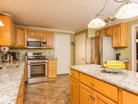 Buyers got cold feet so here is your opportunity...Beautiful home at end of a cul de sac. Set well off the street behind the Rowley Country Club sits this spacious center entrance colonial. Soon to be brand new heating and a/c systems! Front to back living room with hardwood flooring and wood burning fireplace. Updated kitchen with stainless appliances and granite counters and island. Gorgeous master suite with his AND her walk in closets, private bath with a double granite sink, separate shower & jacuzzi tub. Dining room, living room, entry & landing all have hardwood flooring. 4 bedrooms upstairs AND a separate laundry room with sink. Huge finished basement, central air, central vac, alarm system, natural gas heating are just some of the amenities. Deck overlooking the private back and side yards. Close to highways and schools. Great location. Come See!!!