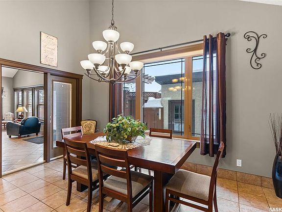Step into this Sophisticated Luxury Home where quality craftsmanship and high-end finishes create an atmosphere of elegance! This spacious 4-bedroom, 4-bathroom residence welcomes you with a grand foyer and stylish French doors leading to the main living area. The heart of the home is the grand living area featuring soaring vaulted ceilings and a striking double-sided fireplace. The open-concept design seamlessly connects to a chef’s dream kitchen, outfitted with top-of-the-line Jenn-Air appliances, rich maple cabinetry, a large central island, and luxurious granite countertops and sink. The dining area is bright and inviting, accommodating a full-sized table with ease, along with well-placed skylights throughout. At the same time, a gorgeous sunroom—complete with a fireplace and backyard access—adds a cozy retreat. The main floor hosts three bedrooms, including a luxurious primary suite with a spacious walk-in closet and a spa-like 5-piece ensuite featuring a jetted tub, separate shower, and elegant vanity. A second 3-piece bathroom on the main floor offers additional convenience, along with a laundry room that includes a 2-piece bath and tiled flooring. Upstairs, a versatile bonus room with hardwood floors and an electric fireplace offers endless possibilities—perfect for a relaxing lounge, home office, or games room with a picturesque view. The basement is partially finished, featuring a fourth bedroom, a 3-piece bathroom, and a utility room. A large heated crawl space with a concrete floor provides excellent storage. Outside, enjoy the beautifully landscaped side yard with a garden shed and a fenced-in area for added privacy. The backyard deck features a pergola and privacy fencing, making it the perfect place to unwind. A heated double attached garage with direct entry and additional parking completes the property. Located just 20 minutes from the BHP Mine and 30 minutes to the City of Humboldt. Call today!