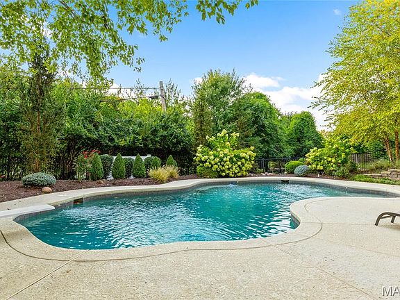 Spectacular 8539 sf Rehnquist built Estate home in premier Town & Country location. 2-Sty foyer with dramatic flared staircase leads to well-appointed study, formal dining room & stunning great room with fireplace flanked by arched bookcases & soaring windows that overlook parklike backyard. Designer kitchen featuring alderwood cabinetry, granite countertops, Cafe appliances & butler’s pantry adjoins vaulted breakfast room & hearth room with floor-to-ceiling stone fireplace. Primary bedroom suite with luxury bath with shower spa offers an appealing retreat. A 2nd ensuite bedroom with wet bar, adjacent den & private entrance plus office with built-in work centers complete the main floor living quarters. Front & rear staircases access 3 additional ensuite bedrooms & 2nd floor laundry. Walk-out Lower Level includes recreation room with wet bar & brick fireplace, media room, office, 6th bedroom & 2 full baths. Situated on a 1-acre lot with pool, deck & covered patio surrounded by landscaped gardens.
