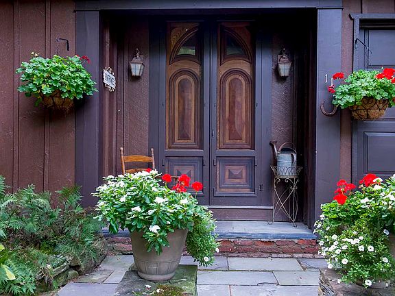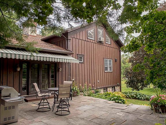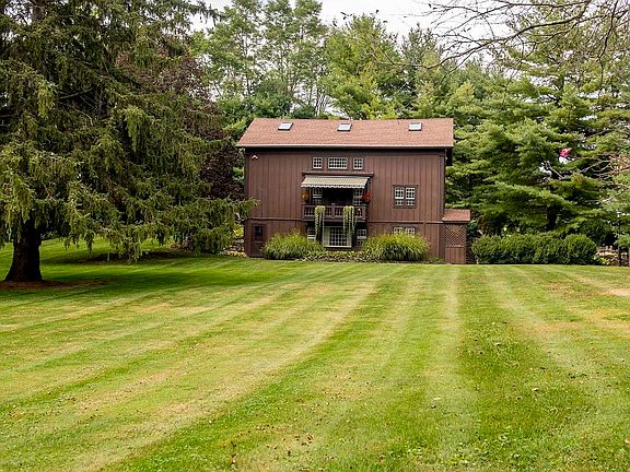 A one-of-a-kind property full of tremendous charm and character, this wonderful 19th century bank barn is a stunning home, privately tucked away on one landscaped acre within walking distance to the Village of Millbrook. The three-story interior was thoughtfully crafted and boasts remarkable features, sourced from either the original barn or repurposed materials found locally, including original hand-hewn beams, early pine and chestnut doors, period lighting fixtures, and fabulous antique flooring. This enchanting four bedroom, three and a half bath home is finished with 19th century wide plank floors, tongue and groove wood ceilings, high coffered tin ceilings and a wood-burning stone fireplace. The entry of the house opens to a lovely study with walls lined with custom bookcases and an inviting French door leading to a lovely stone patio. The kitchen boasts high quality appliances and attractive white oak cabinetry and the elegant dining room is finished with a built-in cabinet made of beautiful chestnut wood. The airy, great room, with French doors and a dramatic ceiling open to the loft, is a splendid room where family and friends will relax around the massive island or the stone fireplace. A hallway of old doors, conceals lots of practical storage, a powder room, and a laundry room. The finished ground level is comfortable and cozy with many rustic touches, featuring beamed ceilings, stone walls, and antique wall panels from an old barn. With a separate entrance and access to the outdoors with a patio area, it is perfect for guests. Beautifully sited amid fine plantings and landscaping, this home is a treasure, a delightful property for enjoying life in the wonderful Hudson Valley. A perfect property for full time or weekend retreat.