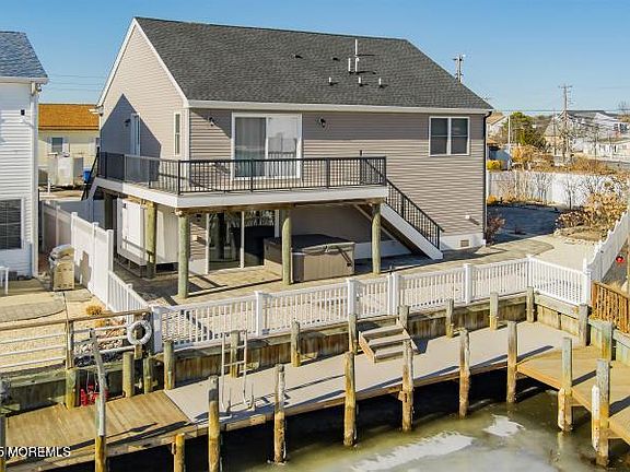 Discover the perfect waterfront escape just minutes from the beautiful beaches of Long Beach Island. Situated on a large, irregular lot with lagoon frontage, this home offers seamless indoor-outdoor living with an open floor plan and sliding doors to a wide deck overlooking the lagoon, featuring a spacious kitchen with modern stainless-steel appliances and plenty of cabinet space, making it a heaven for those who love to cook and entertain. The living room with high ceilings creates an airy, open feel while offering spectacular views of the tranquil lagoon. This bright and inviting space is perfect for hosting family gatherings or enjoying quiet evenings in front of the water's beauty. The fully fenced yard with a large, paved patio area offers endless possibilities. The oversized garage features two openings for easy access. After a day on the water or at the beach, unwind in the hot tub and soak in the peaceful surroundings.