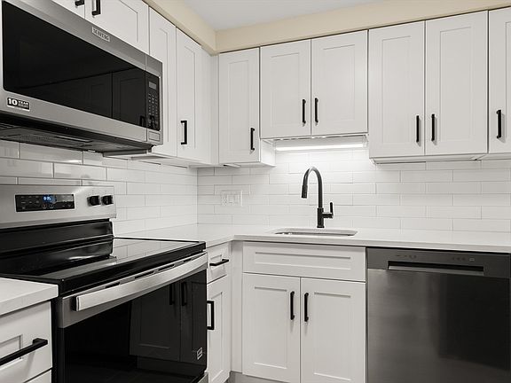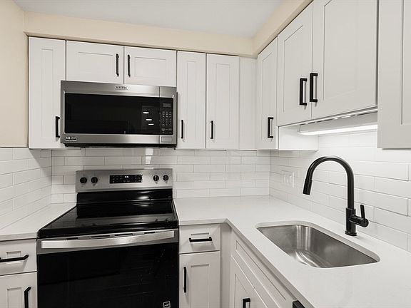Picturesque landscapingModern kitchenPrivate terraceQuartz countertopsStainless steel appliancesBrand-new cabinetsFresh paint
