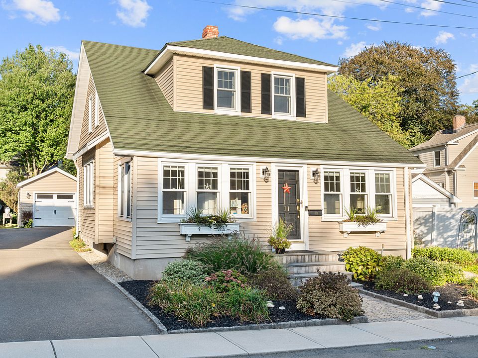 Completely remodeled Cape just 1 mile from the beach and minutes to Branford Center! The heart of this home is a stunning chef's kitchen, custom cabinets with an island, double oven, gas cooktop,a large pantry closet, granite counters, beatiful lighting with an open flow to the dining room-perfect for gatherings. The spacious living room features a cozy wood-burning fireplace, built in storage while the heated enclosed porch provides year-round enjoyment. The main level also includes a remodeled guest bath and mudroom that leads to an amazing yard. Hardwood floors run throughout the entire home along with cutom trim. Upstairs you'll find three generously sized bedrooms with hardwood floors and custom woodwork, plus a fully remodeled bath with an oversized walk-in tiled shower that extends to the ceiling. Step outside, from front to back you are greeted with beautiful stone work. paver walkways & patios, that include a bluestone front step, stunning mature gardens with a paver walkway that leads to a backyard built for entertaining-complete with a fire pit, a stone pizza oven along with a built in area perfect for a grill and outdoor refrigerator with granite countertops all surrounded by gorgeous landscaping. Additional features include a one-car garage, gas heat, wood burning stove and central air for year-round comfort. Unbeatable location-less than 1/2 mile to the train station, center of town, local brewery, and only 1 mile to the shoreline!
