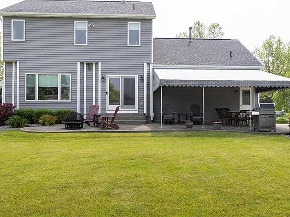 Step outside to enjoy the large stamped concrete patio, complete with a firepit and fully installed retractable awning, overlooking a deep, landscaped backyard and new storage shed. The 2.5-car attached garage provides ample room for vehicles and extra storage.