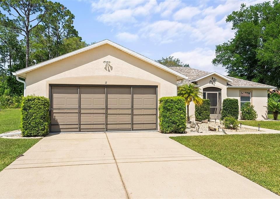 Welcome to 11 Rylin Lane nestled in the desirable Lehigh Woods neighborhood of Palm Coast at a NEW PRICE! This 3-bedroom, 2-bathroom Elm model from the Centax Cornerstone Collection promises a blend of comfort, style, and low-maintenance living. Surrounded by well-kept homes with a peaceful ambiance, this property stands out with its inviting curb appeal. Step inside to discover a living space bathed in natural light, boasting new luxury vinyl flooring that seamlessly connects the living room to the formal dining area. Slide open the doors to a tiled, screened patio, offering a tranquil retreat for relaxation or entertaining. The heart of this home is its bright, functional kitchen featuring newer Quartz countertops, a stylish tiled backsplash, and a solar tube that bathes the space in sunlight. Less than four year old appliances ensure culinary efficiency, while the adjacent breakfast nook, with large pantry and its charming double window, provides serene views of the lush backyard gardens. Start your mornings in harmony with nature, enjoying the sight of birds frolicking in the bird bath. A thoughtful split plan layout ensures privacy. Two bedrooms, including the primary suite, feature plush new carpeting, while the third bedroom offers tiled flooring, perfect for guests or a home office. The updated bathrooms boast new toilets, porcelain sinks, and the primary bath indulges with double sinks and a soaking tub-shower combo. Exceptional Upgrades provide easy living. With a Roof only three years old, an A/C system less than five years, and a recently replaced hot water heater, this home is primed for comfort and convenience. Added features include an attic fan, sprinkler system, outdoor shed, and a garage workbench, enhancing both functionality and value. The balance of a Home Warranty through July 2025 conveys to the Buyer. Situated in the heart of Palm Coast, this property offers the perfect balance of quiet residential living and easy access to beaches, shopping, dining, and excellent schools. Just 10 miles from the beach, your coastal lifestyle awaits. Don't miss out on the chance to make this beautiful Palm Coast home your own. Schedule a showing today and experience the perfect blend of elegance, comfort, and convenience.