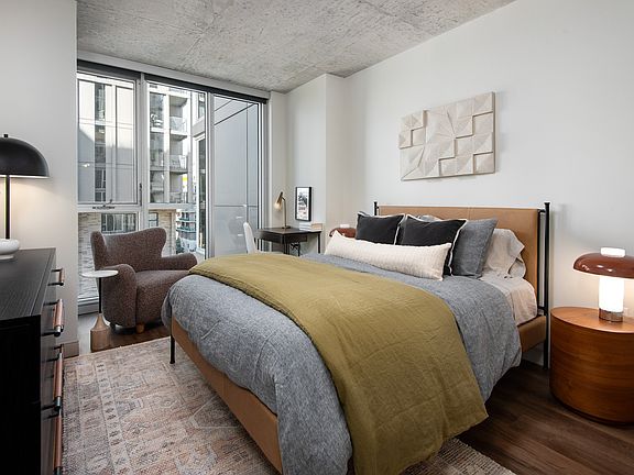 - Exterior features: , Balcony, Bicycle storage, Concrete Ceilings, EV Charging Stations, Efficient Gas Ranges, Floor to Ceiling Windows, Flooring: Wood, High-speed Internet Ready, Leed Certified, Luxor Packaging, Online Rent Payment, Pet-Friendly, Resident App, Sleek quartz kitchen countertops, Steps from Mariano's and Whole Foods grocery, Valet dry cleaning provided by Tide Cleaners, Virtual Tours