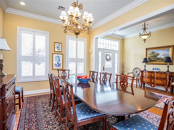 Showcasing panorama golf course views, this traditional home in Pinnacle Country Club offers classic design & finishes throughout. Beautifully manicured landscaping welcomes you to 5,553 sq ft 2-level home, situated on 0.33 acres. The foyer flows into the elegant living room & dining room captivating outdoor views with impressive windows, fireplace, built-in cabinetry & craftsman details. Transition to the family breakfast room + kitchen with access to outdoor balcony space for dining & entertaining amid the serene surroundings. On the opposite end of the home, enjoy 2 secondary bedrooms with full bath & primary suite with wall of windows, two closets, & bathroom with large bathtub, walk-in shower & vanity. Basement includes a bonus & family room, study, bedroom with full bathroom, fitness or media room, & additional walk-in storage. Highlights include a 2-car garage with additional golf cart garage, sink, built-in cabinetry for storage & stairs to impressive heated/cooled storage space above the garage.