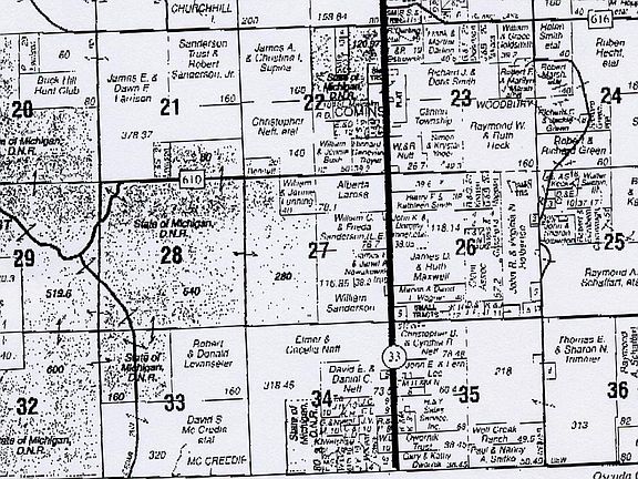 9.5 acres of fully wooded property located between Fairview and Comins. Mixture of tree types, poplar, pine and some hardwoods. Mostly level, some low spots, electric available, private access.