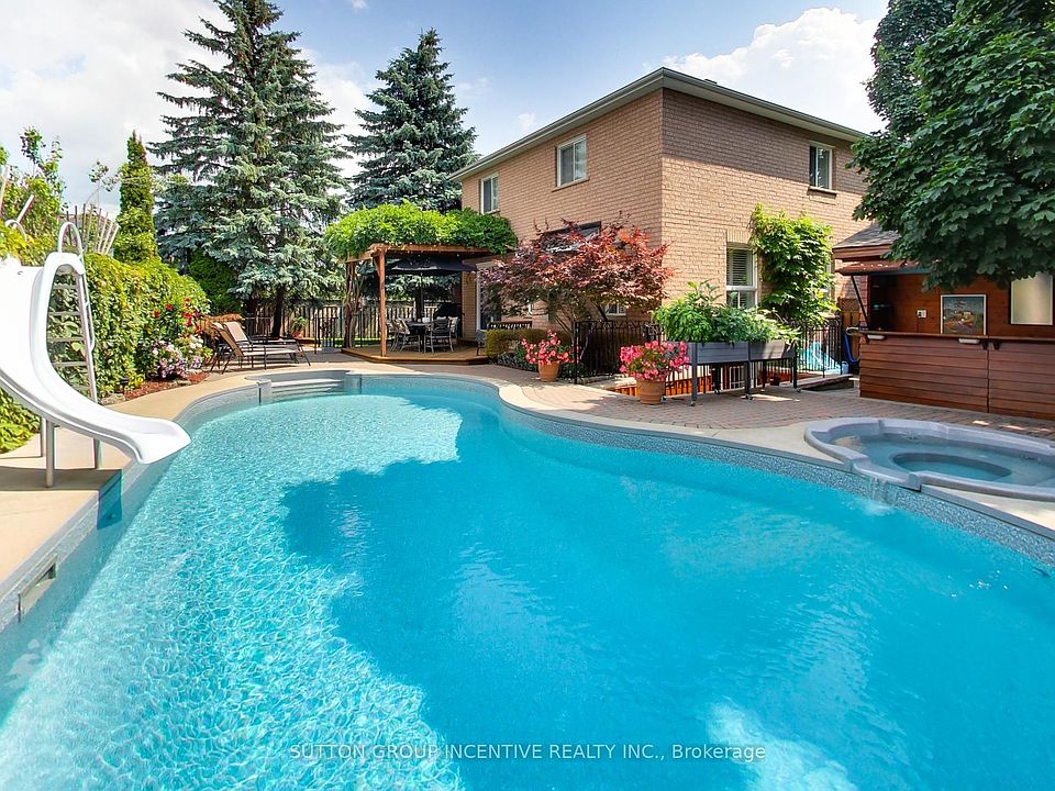 This gorgeous 4 bedroom 4 bathroom beauty is located on a quite court with a premium pie shaped lot complete with a dream backyard oasis. Add to that a separate walkup entrance to a potential 1 bedroom apartment or inlaw and this stunning home has it all. The open concept main level boasts great spaces with Kitchen Aid stainless steel appliances, granite counter tops and tumbled marble backsplash in the kitchen. Enjoy additional main floor conveniences like laundry, direct access to the garage with new epoxy floors, 2 piece bathroom and multiple accesses to the dream backyard. Relax by the pool (new liner 2022) with attached spa, pool bar area with exterior 2 piece bathroom and enclosed pool equipment area. Take in the mature landscaping throughout the property with wonderful decking and seating areas. Additional nice touches like the inground sprinkler system, attached exterior storage area, direct barbecue gas line and even exterior hot water lines. On the upper level you will find 4 good size bedrooms all with maple hardwood flooring. The oversized primary bedroom has an amazing spa like en-suite with a huge separate vanity area and walk in closet. This completely redone ensuite boasts a huge separate glass door shower, free standing tub and a quartz counter top vanity. A further large 4 piece bathroom is available for the family. If you need extra space the fully finished lower level with newly redone bathroom, bedroom, sitting area with gas fireplace and kitchen area is ready for you. On this level you will benefit from the professionally done separate walk up entrance. There is also a closet with water hookup if you wanted to add laundry to this level and a huge cold cellar area. New roof in 2024, Toto toilets in main and upper level and other high end fixtures and materials throughout. This home has so many thoughtful touches that it really must be seen to appreciate. This home exudes pride of ownership.