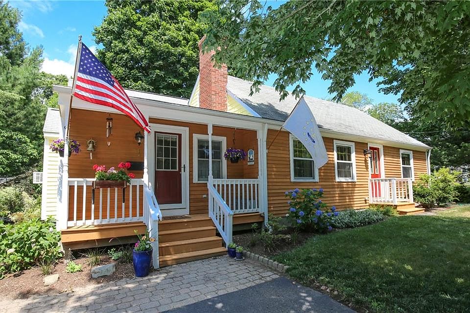 A Spacious & Charming Cape in an amazing location awaits you in Barrington! This home offers Four Good Sized Bedrooms for every member of the family to enjoy their own private space. Two Full Baths one on each floor for optimal convenience. Spend time with friends and family in the large Great Room addition with vaulted ceilings and warm up on cold nights next to the fireplace in the spacious living room. Cook and Entertain in the updated kitchen with granite and stainless steel appliances. Spend warm nights lounging on the front porch or deck and enjoy all that this Hampden Meadows neighborhood has to offer. Back yard offers a shed and beautiful Perennial Gardens. This home is very well maintained with many upgrades and updates while still maintaining it's original charm w/ Southern Pine Flooring and Built-Ins. Additional updates include a new chimney and liner and replacement windows and doors. A new Certainteed Shingle Roof is contracted and is being installed which will include a transferable warranty to the new owner. Walk to water from this quiet dead end street! Conveniently Located. Close to Shopping, Restaurants, Barrington Beach, 4 Town Farm, RI Country Club, East Bay Bike Path and nature trail. Take advantage of Barrington's Blue Ribbon Schools! Easy Highway Access. Only minutes to Providence or nearby MA. NO FLOOD INSURANCE REQUIRED!