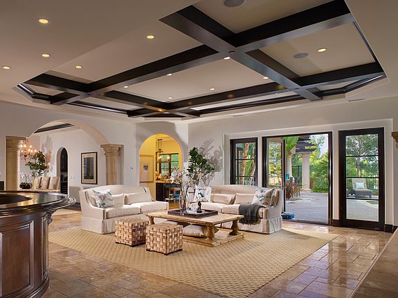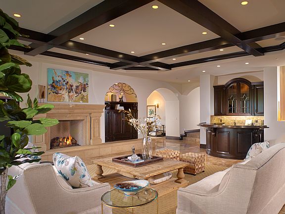 Stunning custom Spanish-style estate situated on a premier cul-de-sac lot in the coveted Covenant Hills community. This residence combines the best of privacy, large-scale living, matchless amenities, and lavish outdoor spaces to create the ultimate luxurious setting. No detail was overlooked in the building of this residence, which boasts an open floor plan spanning approx. 6,650 sq. ft. Luxe finishes include gorgeous stone flooring, French doors, dark crown moldings, high ceilings, custom ironwork and plantation shutters. The interior encompasses a Great Room with beamed ceilings and full wet bar; formal dining room; grand gourmet kitchen fit with an oversized island, butler’s pantry and updated stainless steel appliances; formal living room; 5 capacious bedrooms including a extravagant master suite; and 5.5 bathrooms. The outdoor entertaining area offers the perfect venue for any occasion, fit with a pool, in-ground spa, spanning patio and covered outdoor kitchen. Panoramic views of the hills and mountains abound from outdoor spaces & upper level. This premier property offers a truly idyllic lifestyle in Ladera Ranch’s finest gated community.