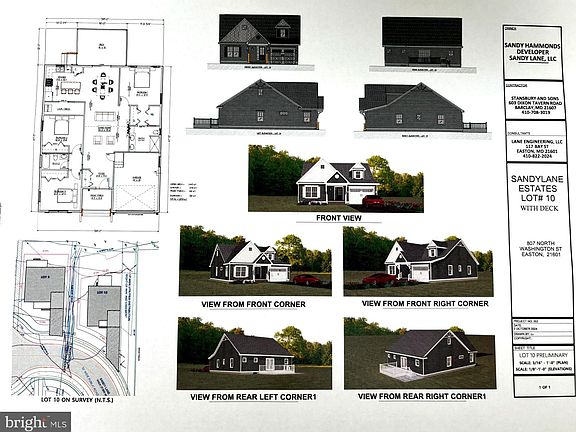 To be built. Aidan Model 38' wide with rear trex deck on one of the neighborhoods premier lots at 15 Sandy Lane in downtown Easton! This will be the fifth home to be built in the new ten-home Sandy Lane subdivision. Enjoy the convenience of single-story living with three bedrooms, two full baths, great room with vaulted ceilings open to the dining area and beautiful kitchen featuring custom cabinetry, countertops and stainless appliances. This home also includes a full laundry/pantry and tiled baths with Luxury Vinyl Flooring. Sandy Lane homes are all stick-built by local contractor Stansbury and Sons, individually designed by architect Darren Johnson, and packed with high-end features. These include encapsulated climate-controlled crawl spaces (great for storage), superior framing and finish construction, Certified IECC Energy Efficient insulation (R-65 ceiling, R 27 walls), high quality luxury vinyl flooring throughout, ample closet space, contemporary ceiling fans and fixtures, and so much more. Whether you are retired, working from home or have a growing family, the flexible floor plan and finishes of the Aidan 41 will suit your needs! Developer paid all infrastructure costs up front (permits, site work, water, sewer, electric, cable, street, sidewalks, streetlights, etc.) so no extended yearly front foot fee to Buyer. **************** Sandy Lane is conveniently located off N Washington Street in the town of Easton proper thus you can enjoy all the perks of downtown living including Easton Utilities all-encompassing electric, water & sewer, cable & high-speed internet service; weekly town trash pickup; beautiful downtown parks with ball fields, hiking paths, cinder track, playgrounds, tennis and pickleball courts, community pool and fenced dog space; beautiful waterfront access; Easton fire and police services; medical, cultural, shopping, incredible dining experiences and so very much more. Not to mention all the additional opportunities found throughout the rest of Talbot County! Developer: SANDY LANE, LLC. MHBR 9512. Builder: STANSBURY AND SONS HOME IMPROVEMENT INC., MHBR 8351.