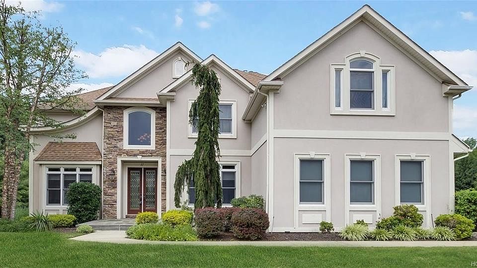 Young,custom Executive Colonial in prime neighborhood located just 45 miles to Manhattan.More than 5200sf finished space with over 3800+sf living space on the upper two lvls,PLUS over 1400sf finished in walk-out basement that includes walk-in wine cellar.From the time you enter this stately home you will appreciate the details throughout including a 2 story entry, crown moldings,Brazilian cherry floors in living & dining room,flex office/au pair suite with full bath on main lvl.Gourmet kitchen with professional-grade stainless steel Wolf appliances,cherry cabinets w/center island,granite countertops,tile bcksplsh,pantry & door to deck.Open floorplan w/2 story great room w/full wall stone fireplace & 2 stories of windows.Upper level has 4 BR's, plus convenient laundry room.Master suite w/sitting area gas fplc,ensuite bath w/whirlpool tub,shower,tile walls,marble tops.Walk out fin.bsmt lots of extra living space incl.exercise room,wine cellar,2 BR's,full bath&large familyroom w/fireplace