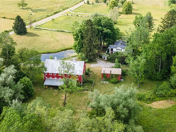 Your own piece of paradise has arrived and it is nothing short of magical. A special home, layered with touches that tell a beautiful story of its past ownership. From the first impression upon entering, this 6 Bed/2 Bath Farmhouse from around 1840s begs to be explored: room after room of hand crafted details, cozy corners, grand spaces, along with modern touches any owner wants. Updated lighting throughout! Sleek kitchen with updated appliances, captures farmhouse charm with hand painted illustrations on cabinets! Main level bath and optional master, with 5 fantastic bedrooms and full bath upstairs. Outside equally calls to be enjoyed: Postcard panorama, 2-story front patio overlooking stocked pond, 3-story classic red barn, delightful landscapes, creek, new fence on 5+ acres! Ideal for B&B, venue and has been used for senior photoshoots. (Be sure to check out Calendar feature of barn in kitchen) So much more to see, 11 Scott Road is place to dream big and enjoy life to the fullest!