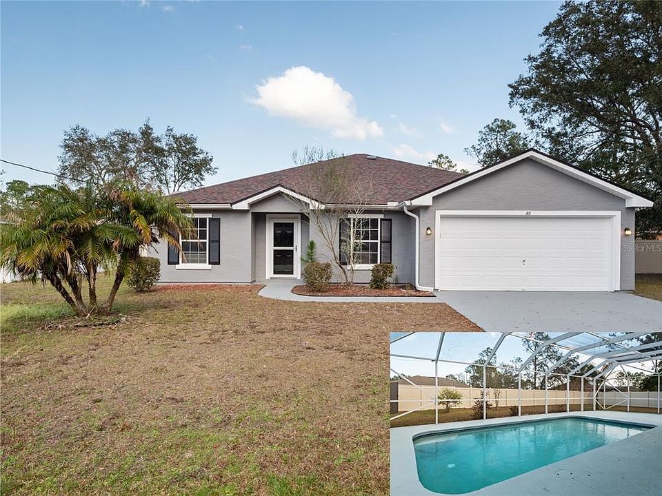 SOAK IN THE FLORIDA SUNSHINE IN THIS FABULOUS POOL HOME ON SEA FLOWER! Stop for a second, stay for a lifetime in this 3 bedroom, 2 bathroom home located in the highly desirable Seminole Woods Subdivision. Tastefully updated 2023. SPACIOUS KITCHEN FEATURES: Plenty of Cabinet and Counter Space, NEW STAINLESS-STEEL APPLIANCES, A Pantry and Separate Breakfast Nook/Secondary Dining Area. LARGE MASTER SUITE FEATURES: Soothing views of the pool, Brand New Carpeting, Walk-in Closet, Individual Tub/ Shower options and a Separate Water Closet. Whole house has been freshly Painted. NEW CARPETING in all of the bedrooms. NEW LUXURY VINYL PLANK FLOORING in the living room, front office/ flex space and dining area. Beautiful saltwater pool, with extended screened in lanai, provides ample privacy and is perfect for entertaining friends and family! NEW ROOF 2017. FULLY FENCED, OVERSIZED YARD is perfect for pets, projects or play. Storage Shed. NO HOA FEES! And so much more! Close to shopping, schools Palm Coast's renowned walking paths, golf courses and THE BEACH. Call to schedule a showing today!