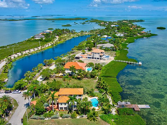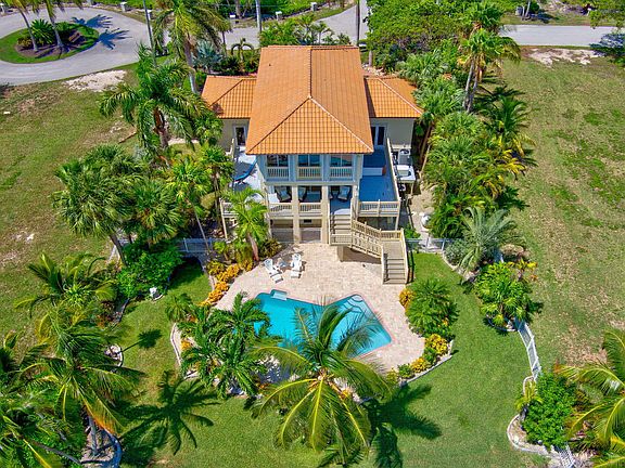 Tranquility best describes the feeling you get when you step onto this beautiful property surrounded by lush landscaping and much desired privacy. This custom 3 bedroom, 3 bath multi-level home boasts panoramic views from all levels allowing you to capture the gorgeous sunrise and unobstructed views of the Florida Keys pristine waters. Upon entering through the main doors you will step into an interior foyer with staircase leading you to the main floor. It is here you will find an open concept living and dining area with large chef kitchen, 2 bedrooms with vaulted cypress ceilings, 2 full baths and a large office that could be easily converted into a 4th bedroom. The additional interior staircase invites you to the breathtaking master suite which occupies the entire second floor with an enclosed porch overlooking the open water, a large master bath and walk in closet. The nautical railings, stained-glass windows and etched glass doors make for a nice custom touch. The large wrap around deck and the paved pool area provides plenty of space to entertain or simply just a place to sit and relax while enjoying paradise. There are separate cooling systems for the first and second floors as well as separate water heaters and a home generator. The downstairs enclosure provides an abundance of storage. Located just 10 miles outside of Key West, Shark Key is a gated community of luxury homes with amenities such as tennis courts, clubhouse, a sandy beach and multiple lagoons.