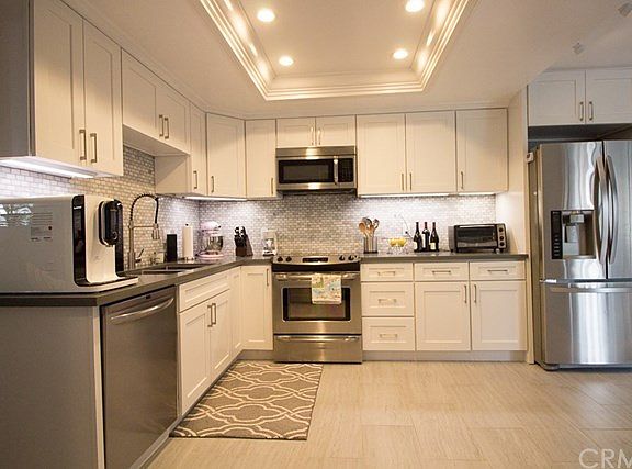 A highly desired, turnkey end-unit with views of Catalina awaits you at the beautiful Seaview Villas. Situated at the best location of the community, the home was completely renovated with modern touches throughout. As you enter you're greeted by the brand new gourmet kitchen that has recessed lighting which highlights the marble backsplash. New soft-close cabinets and countertops accompany the huge stainless steel sink and appliances. New copper plumbing has been installed throughout the entire home. Beyond the kitchen is an open living area with vaulted ceilings a cozy fireplace and windows that bring in an abundance of natural light. Walk out onto the balcony and take in the views of the greenbelt, the ocean and Catalina. The layout has a large master bedroom suite privately located on the bottom with a secluded patio overlooking the greenbelt. Master suite is complete with a newly designed walk-in closet with double hanging rods, drawers and added shelving. Master bath has double sinks,marble countertops and tiled floors. The other two bedrooms are located upstairs with a fully remodeled bathroom and large storage area. Other custom upgrades include interior doors, toto toilets, water softener, new water heater and LED lighting throughout. Tennis court conveniently located across from the home, two pools, jacuzzi, rec room and sauna. Enjoy short walks to Highridge Park and Ridgecrest Intermediate. The community is easily accessible to Peninsula High and the Promenade.
