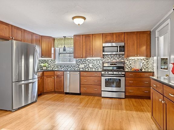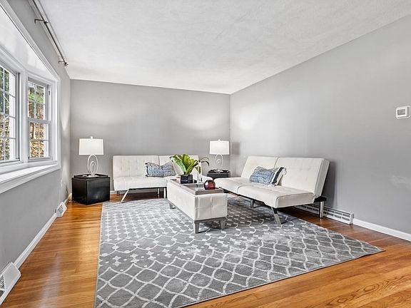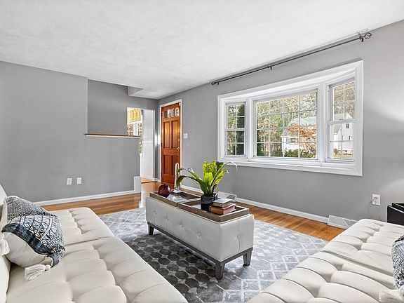 What a treasure! This North Billerica neighborhood home has a terrific location and sits on over an acre of land! The renovated kitchen with custom cabinets has stainless steel appliances, granite counters, a built in microwave and waste disposal. The sunroom is off the kitchen and accesses the back deck. The spacious dining room is open to the kitchen and has a bay window and bamboo flooring. The living room has oak flooring and a bay window with a view to the front of the house. The third bedroom is also on the first floor and is currently set up as an office. An updated bathroom with tub completes this floor. Upstairs both bedrooms have hardwood floors and lots of closet space, plus another updated bathroom with a walk in shower and linen closet. The basement is part finished with a family room area and office space, leading to the unfinished workshop and laundry with access to the outside. This home has gas heat, gas hot water and central air. See attached list of updates.
