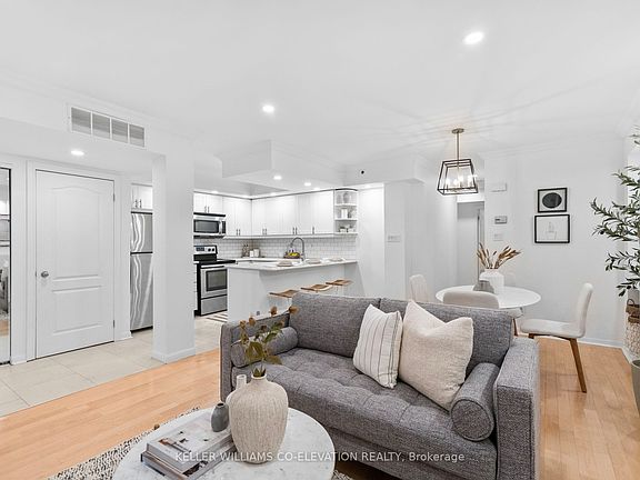 Perfectly situated between King Street W and Queen Street W, this condo townhouse offers the best of downtown living. Steps to Trinity Bellwoods Park and surrounded by acclaimed restaurants, cafés, and shops, with easy access to highways and the lake, the location is unmatched. Inside, a bright open-concept layout combines living, dining, and kitchen spaces, featuring stainless steel appliances & breakfast bar. Two spacious bedrooms offer windows and generous closet space, while a brand-new, stylish bathroom completes this thoughtfully updated home all on one convenient level. Relax on your private spacious terrace - bbq's allowed. Enjoy the ease of owned parking near the unit, plus a separate locker for extra storage. Residents have access to 954 King St W amenities including a gym, party room, meeting room, theatre, and visitor parking. Maintenance fees cover all utilities, making this an outstanding opportunity to live in a vibrant community with everything at your doorstep.