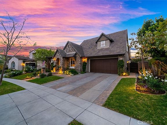 Perfectly nestled in the heart of Ladera Ranch's most coveted neighborhood, this exquisite English Cottage-inspired residence is situated on a tranquil cul-de-sac within the prestigious guard-gated community of Covenant Hills. This stunning two-story home, featuring four en-suite bedrooms and five bathrooms, sits on an expansive 8,905 sq ft lot ensuring privacy with breathtaking unobstructed views and no rear neighbors. Upon entering you are welcomed by warm, contemporary interiors showcasing modern LVP flooring, designer paint and custom wall coverings complemented by upscale lighting, gorgeous arched doorways and bespoke millwork that blend functionality with aesthetic charm. The formal living room seamlessly transitions into a dining area embellished with tray ceilings and custom built-in cabinetry. The heart of the home is undoubtedly the updated chef’s kitchen, a culinary enthusiast’s dream, featuring quartz countertops, custom tile backsplash, premium stainless-steel appliances, farmhouse sink and floor to ceiling white shaker cabinetry, all centered around an oversized island perfect for casual dining and entertaining. The open-concept design flows effortlessly to the sunlit breakfast room and the adjacent family room where you can relax by the cozy gas fireplace leading out to the private outdoor courtyard adorned with string lights and gas fire pit. Conveniently located on the main level is the expansive primary suite, boasting an updated luxurious spa-inspired bathroom with dual vanities, jetted tub, separate shower and two large walk-in closets along with newly remodeled laundry room and two additional en-suite bedrooms, one of which is perfectly suited for a home office or multigenerational living. Venture to the second floor where you'll discover a private retreat thoughtfully curated with impressive designer finishes. The spacious loft includes a cozy reading nook, a newly updated bathroom with custom tile and a reimagined bedroom. Step outside to your backyard oasis with covered patio, outdoor kitchen bar featuring a sink, refrigerator, and built-in BBQ. This re-piped residence also includes a car enthusiast’s dream, a two-car garage equipped with an EV charging station, workshop, storage and epoxy flooring. Embrace the Covenant Hills’ lifestyle with access to multiple pools/spas, pickleball, putting green and more! Walking distance to Covenant Hills Clubhouse pool/tennis, Oso Grande Elementary and the aquatic and skate parks.