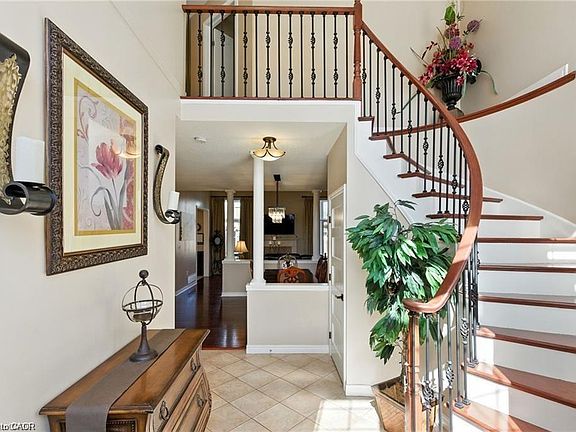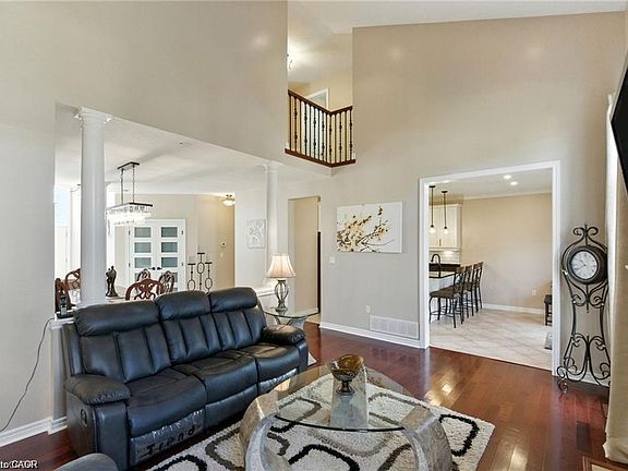 Welcome to this beautifully updated family home offering over 3,000+/- sq. ft. of total living space. The grand entrance and great room feature soaring ceilings that fill the home with natural sunlight, complemented by hardwood floors and an inviting gas fireplace in the open-concept main level. The kitchen boasts granite countertops, stainless steel appliances, updated backsplash, under-cabinet lighting, breakfast bar, and slow-close cabinetry. The primary bedroom showcases vaulted ceilings, a walk-in closet, and a private ensuite, while the fully finished basement (2019) adds incredible living potential with a built-in entertainment wall, electric fireplace, rough-in plumbing for a future in-law suite, additional bedroom, and full bath. This home offers 3+1 bedrooms and 3+1 baths, main floor laundry, and a double car garage with inside entry and updated garage doors. Recent updates make this property truly move-in ready: new front doors (2025), staircase with iron balusters and refinished treads (2025), solid core shaker doors (2024), carpet (2025), Brazilian Cherry hardwood, modern light fixtures, zebra blinds (2025), and most windows replaced (2024/2025). The roof was replaced in 2018 with 40-year cedar shake shingles and also includes deck armor and ice and water shield treatment. The fully fenced backyard features a patio and gazebo, perfect for outdoor entertaining. Additional highlights include an 8x10 shed. Conveniently located down the street from Our Lady of Assumption and Shannen Koostacian Schools, with Bishop Ryan and Saltfleet High Schools just minutes away. Easy access to the Red Hill Expressway, the Linc, shopping, and more.
