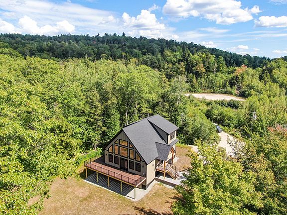 This newly constructed mountain chalet boasts a large four-bedroom, four-bathroom layout featuring captivating vaulted ceilings, a gas stone fireplace, gourmet kitchen with quartz countertop and Bosch appliances and an expansive floor-to-ceiling windows that lets in natural light. With a footprint larger than typical at 32 X 40, spanning over 2,600 Sq. Ft across three finished levels, it offers ample space for living and entertaining. The main level is optimized for accommodating large furniture, including a spacious living room, a sizable dining area, a custom-designed open kitchen, and an ensuite bedroom, and full bathroom with marble countertop. The upper-level hosts two bedrooms with expansive picture windows and a shared full bath with marble countertop, while the lower level includes a mudroom, 2 family rooms, an additional bedroom with bath with marble countertops, radiant heat, and a utility room. Interior highlights encompass pine boards, quartz and marble countertops, and tiled surfaces, among other premium finishes. The property boasts ample space around it providing abundant natural light from all angles. Exterior finishes include vertical engineered wood siding for enhanced durability and minimal upkeep. Nestled in Thundersnow and 3 miles from the National Forest, this property offers privacy, breathtaking views, and convenient proximity to downtown Bethel and Sunday River Ski Resort. Whether you are looking for a full-time home, a second home, or a top-of-the-line rental property, this new construction offers it all.