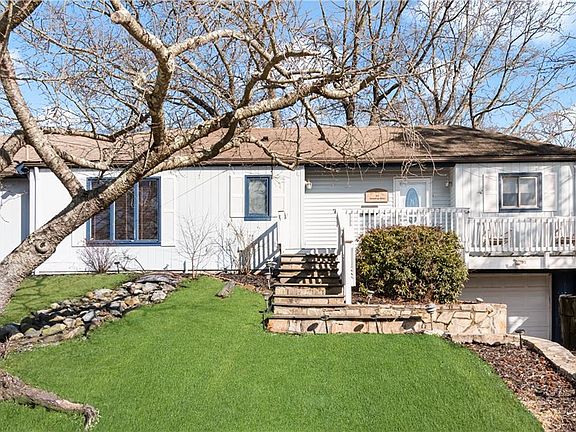 Welcome to 11 Snowdrop Drive— a truly special one level home with a unique, modern layout. Cranston’s sought after Garden Hills neighborhood is the perfect setting with lovely surrounding homes and immediate highway access. The best shopping and conveniences including Garden City Center and Chapel View are only a few minutes away. Upon entering the home, you will find a generously sized entry foyer with ample closet space. The open concept floor plan is exceptional and welcoming. The dining area and living room have soaring vaulted tongue and groove ceilings. The entire main level has sliders that open to an expansive centralized deck and private yard with a variety of colorful plantings. This feature provides amazing indoor-outdoor living and makes the space incredibly inviting. The well appointed, modern kitchen has lots of great windows and stainless appliances complete with separate beverage fridge. The primary suite is nicely tucked away and extremely spacious with its own full bathroom. There are two more good sized bedrooms and another large full bath with laundry. Additionally, there is a bonus office/ study that could easily work as a fourth bedroom. Come and see this calming, private retreat for yourself— an awesome place to call home in an idyllic location.